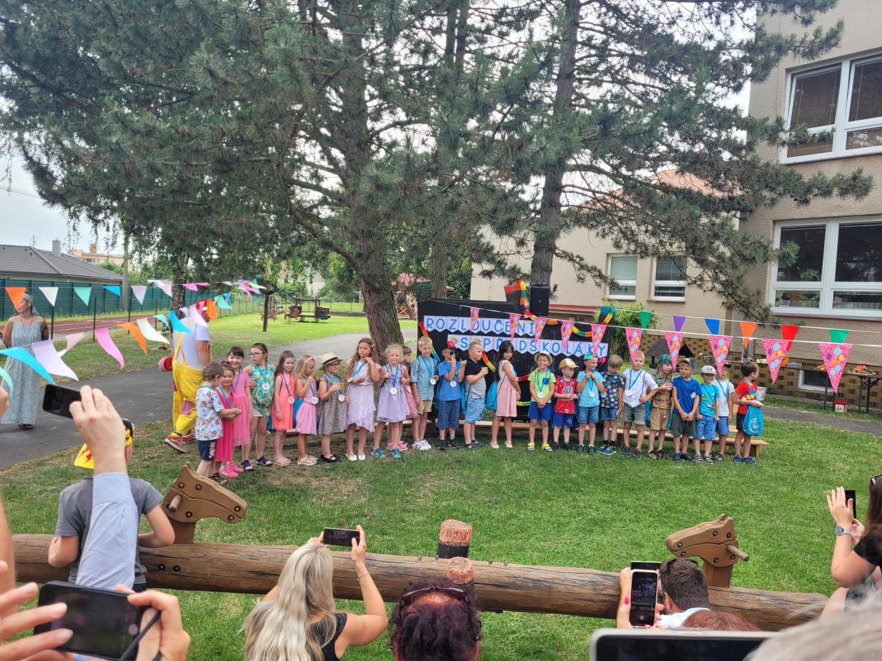 Ve čtvrtek 26. června jsme se s velkou radostí rozloučili s našimi předškoláky, kteří se chystají na novou etapu svého vzdělávání. Akce se konala na krásně vyzdobené školní zahradě, kde děti prezentovaly své dovednosti v podobě básniček a písniček. Program obohatil Krejčík Honza, který děti na jejich cestě do základní školy podpořil svými mega rukavicemi. Přejeme všem školákům mnoho úspěchů a šťastný vstup do základní školy!