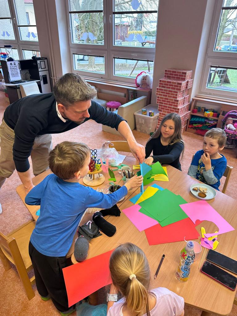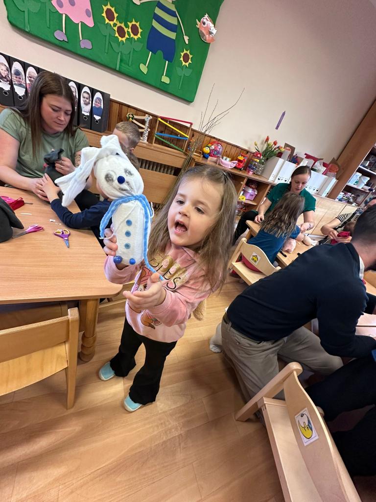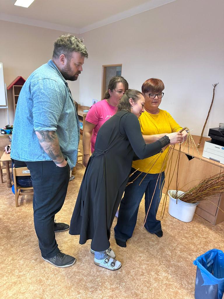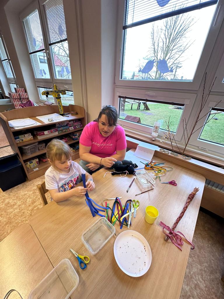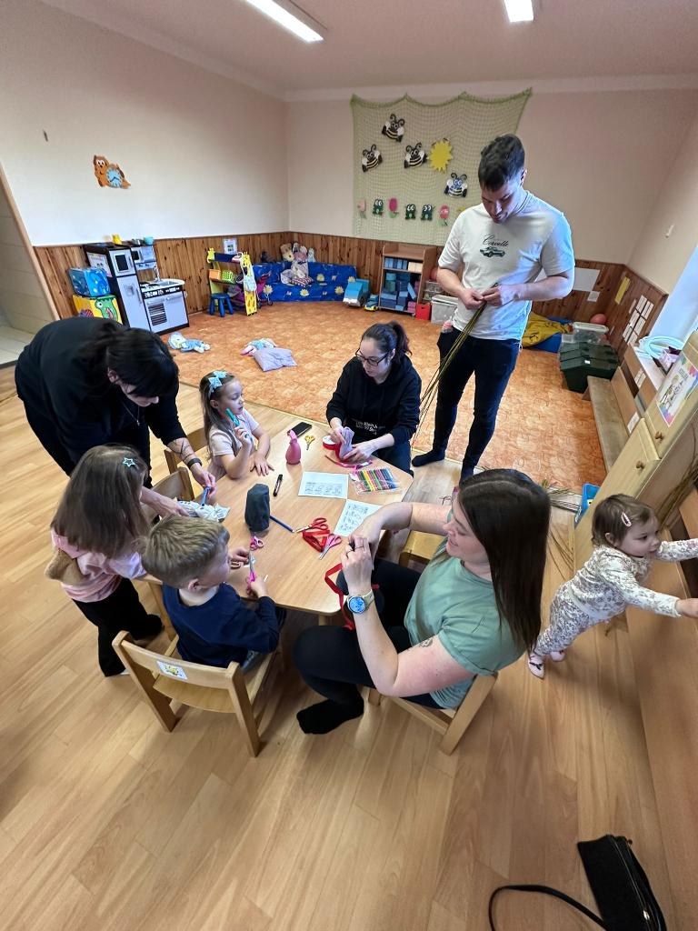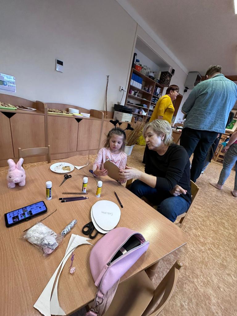 Děti společně s rodiči či prarodiči vyráběly různé výrobky: zápich do květináče, vajíčko zdobené pomocí bavlny a raznic, zajíčka z proužků papíru, zajíčka z liché ponožky (plněného dutým vláknem či zrním) a nechybělo ani pletení pomlázky.