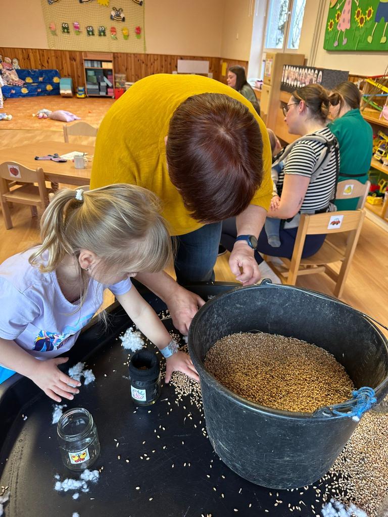 Děti ze tříd Sluníček, Berušek a Myšek připravily tradiční velikonoční pohoštění – mazanec, beránka a nádivku.