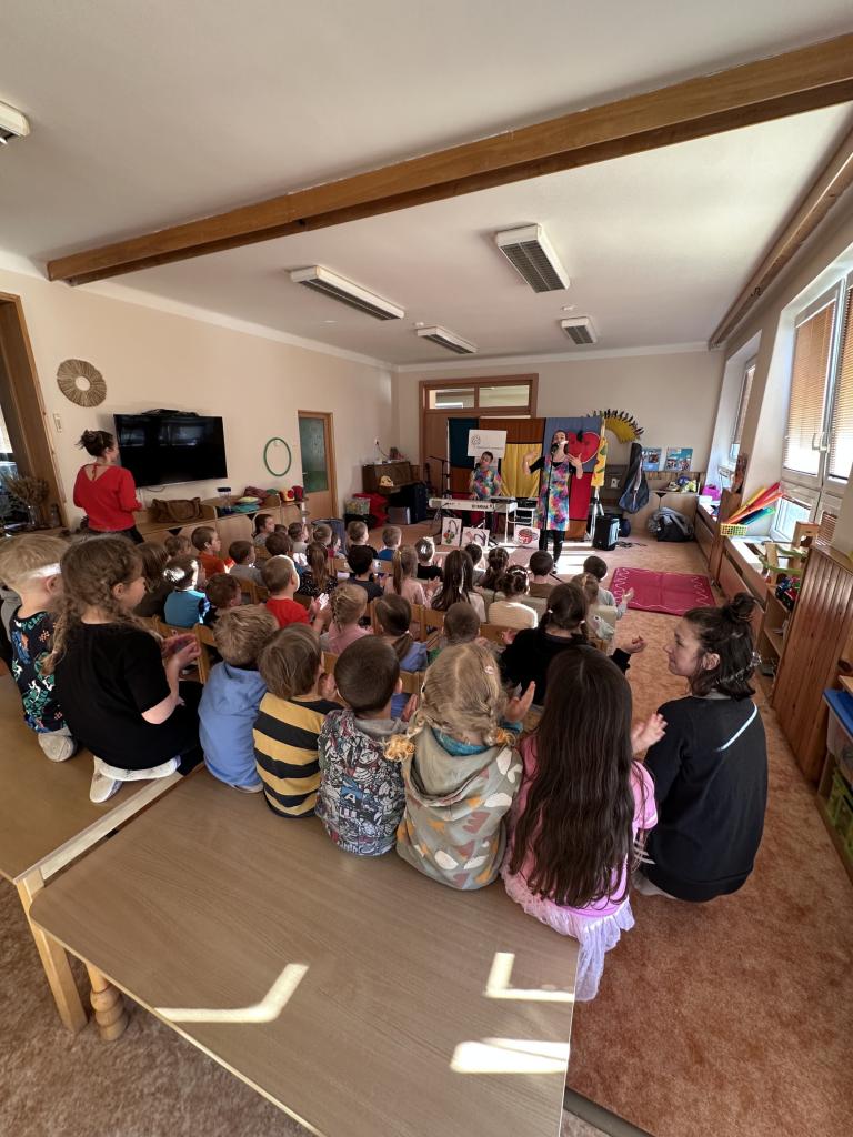 Informační centrum bezpečnosti potravin Ministerstva zemědělství ČR a Spolek My a děti z.s., nabízejí mateřským školám hudebně zábavný program dvojice Vanda a Standa "Přijede k nám návštěva" zaměřený na zdravou výživu a hygienu při stravování a ti k nám přijeli v pátek 4. 4. 2025