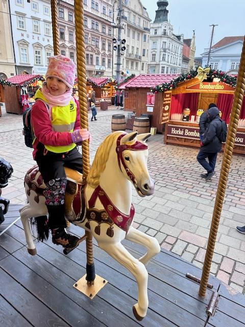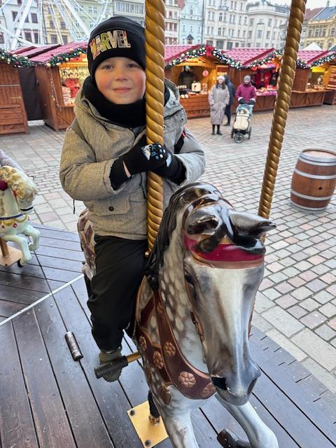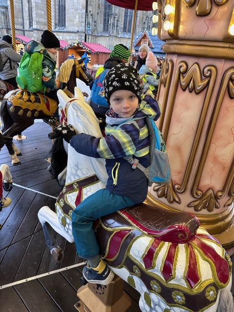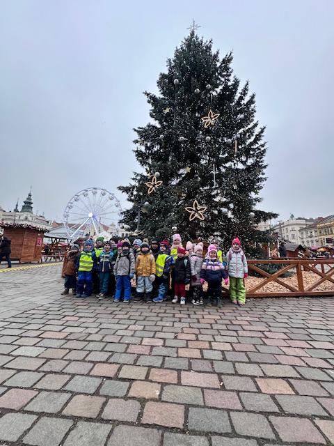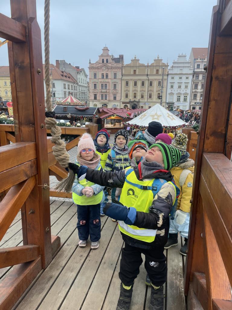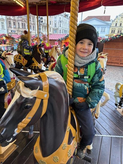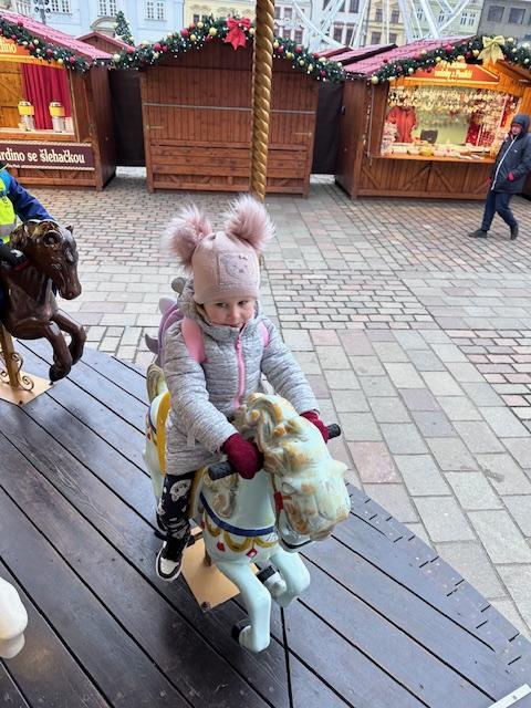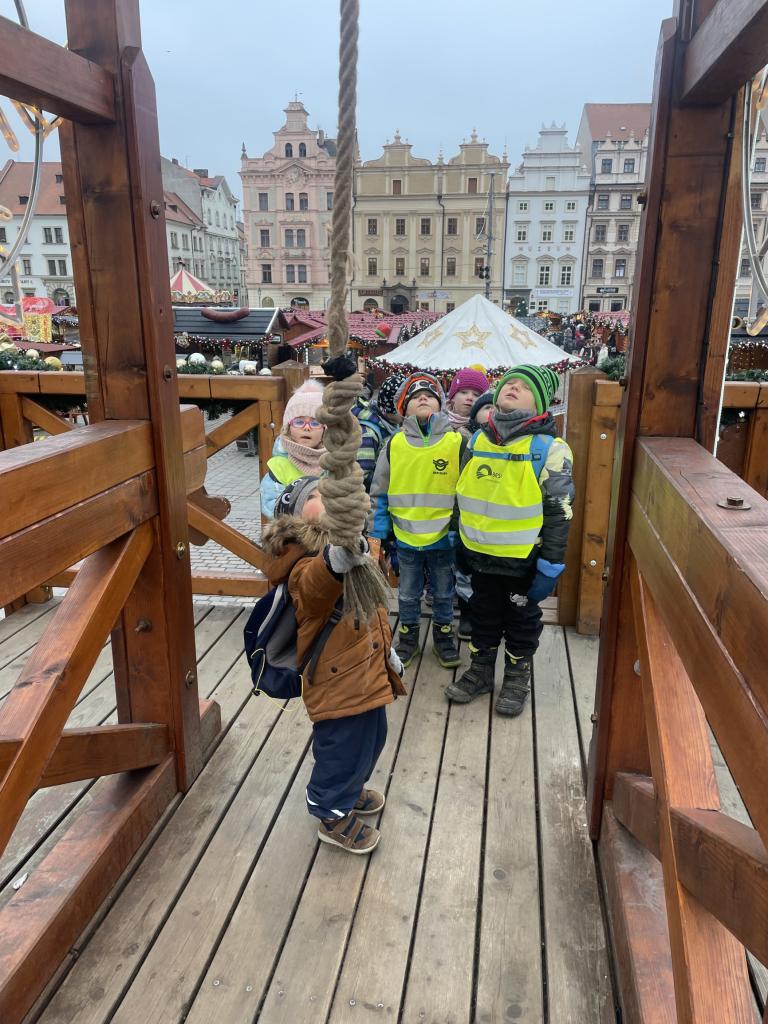 V pátek 13. 12. se společně třídy Myšek a Berušek vydaly na adventní trhy na plzeňské náměstí. Hned ráno pro nás měly paní kuchařky připravenou svačinku na cestu a mohli jsme se vydat za předvánočním dobrodružstvím. Pořádně jsme se oblékli a vyrazili na autobusovou zastávku, kde jsme nasedli na autobus směr Plzeň – cesta rychle utekla a nás čekala cesta pěšky na náměstí, po cestě jsme si dali svačinku a hurá na trhy. Na trzích jsme viděli spoustu krásných stánků, vánoční stromeček, živého oslíka a kozu, krásný velký betlém a nakonec jsme se svezli na kolotoči s koníky. Po jízdě jsme si každý zazvonili na zvonec a honem zpátky na autobus, abychom ho stihli. Cesta zpět opět rychle utekla, někteří z nás byli tak unaveni, že v autobuse usnuli. Ve školce na nás už čekal připravený oběd, na někoho odchod domů a na ostatní připravené pelíšky k odpočinku.