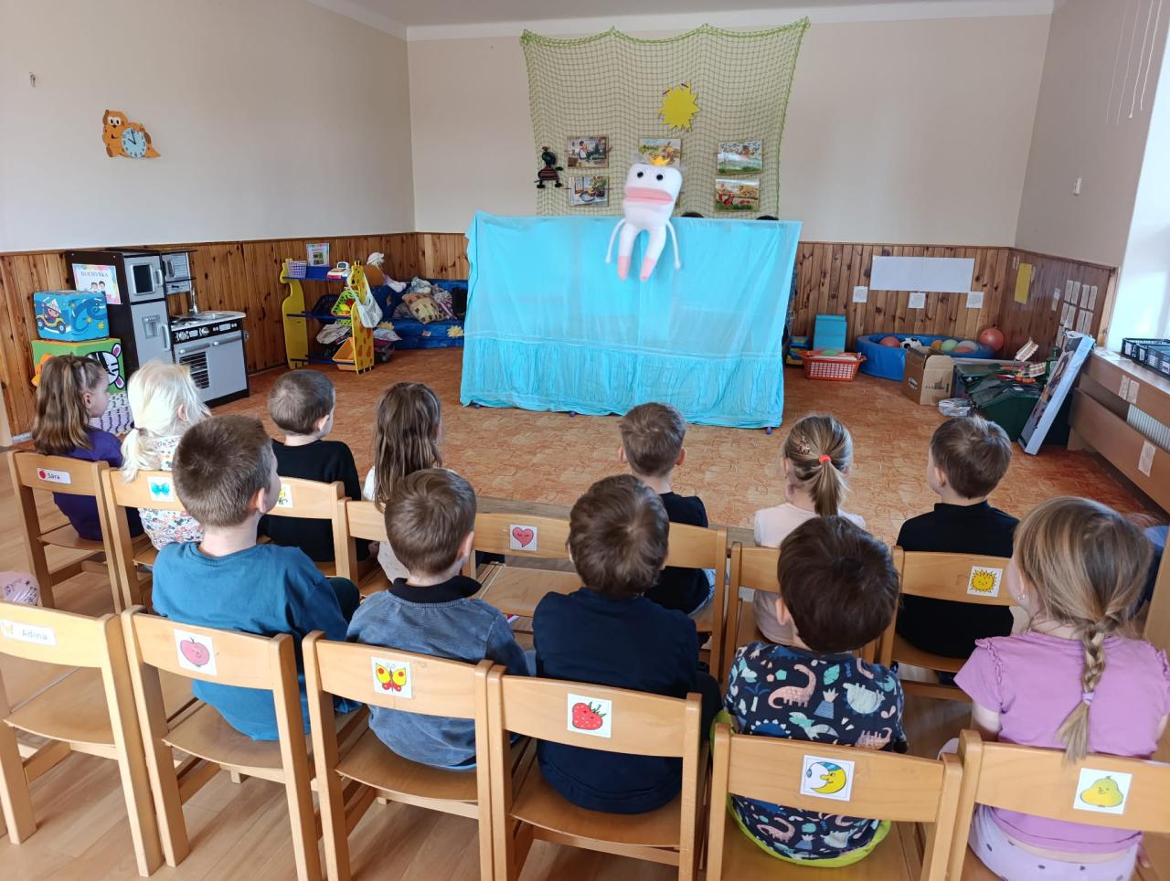 V naší mateřské škole proběhl zajímavý edukativní program s názvem „Zdravý zoubek“, který pro děti připravili odborníci z ČZU. Divadelní představení bylo plné zábavy, smíchu, ale také důležitých informací o správné péči o zuby. Děti se prostřednictvím pohádkového příběhu seznámily s tím, jak si správně čistit zuby a proč je pravidelná péče tak důležitá. Aktivně se zapojovaly do děje, pomáhaly hlavním postavám a společně řešily, jak předejít zubnímu kazu. Důraz byl kladen i na péči o mezizubní prostory, na kterou se často zapomíná. Děti si z něj odnesly nejen nové poznatky, ale i motivaci starat se o své zuby každý den. „Zdravý zoubek“ měl u dětí velký úspěch a věříme, že jim získané návyky vydrží i do budoucna.