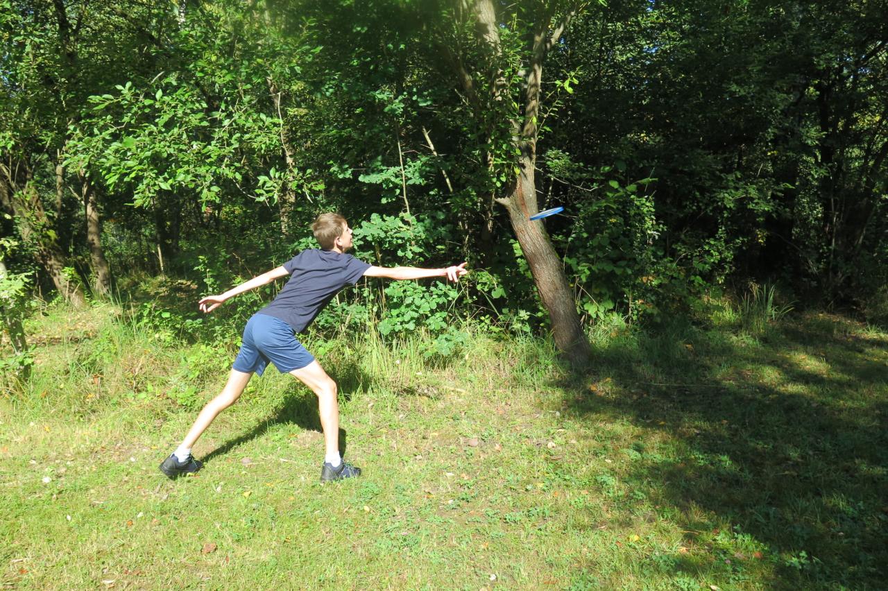 Discgolf je jedním z nejrozšířenějších sportů s létajícím talířem. Pravidla vychází z klasického golfu, ale hraje se speciálními létajícími talíři. Cílem hry je hodit létající disk do koše co nejmenším počtem hodů. Celkem jsme prošli 7 hřišť s koši. Turnaj vyhrál Adam Diepold, kterému se zároveň také jako jedinému podařilo zahodit disk do křoví a zůstal nenalezen😊 Nutno podotknout, že ve křoví skončilo disků víc, ale vždy se nalezly