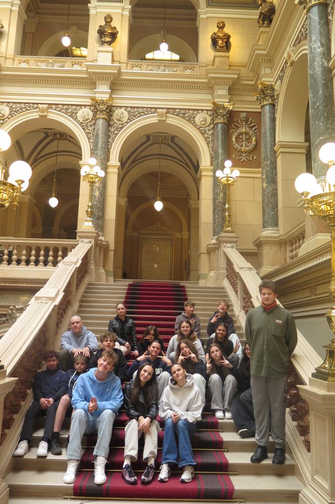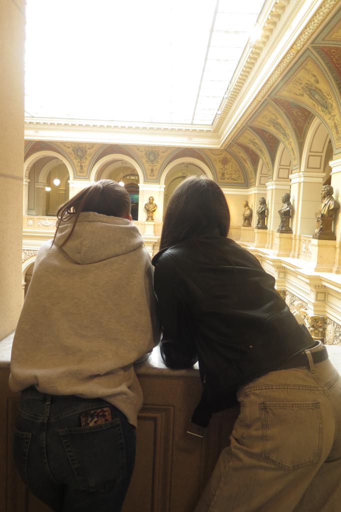 Hlavním bodem dne byla komentovaná prohlídka Národního muzea. Ta nabídla žákům hlubší pohled na historii, architekturu i vzácné sbírky této instituce. Program začal netradičně ve spojovací chodbě mezi starou a novou budovou, kde jsme si mohli prohlédnout historii muzea i jak se měnila zástavba na Václavském náměstí. Poté jsme pokračovali do historické budovy a už jen schodiště žáky uchvátilo. A to nás čekal Pantheon. Pod vedením zkušené průvodkyně se žáci seznámili s osudy osobností, které formovaly naši kulturu a vědu. Komentovaný výklad jim představil i zakladatele muzea Kašpara Maria ze Šternberka. Komentovaná prohlídka nezapomněla ani na architekturu samotné Historické budovy. Žáci se dozvěděli zajímavosti o její stavbě a výzdobě. Velkým zážitkem byla možnost podívat se do kupole muzea, odkud se celé třídě naskytl panoramatický výhled na Prahu a Václavské náměstí. Po skončení historického bloku se osmáci přesunuli do expozice Zázraky evoluce. Největší úžas vzbudily dva ikonické exponáty- obří krakatice a kostra plejtváka mišoka, která dominuje celému sálu.