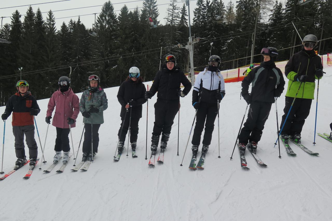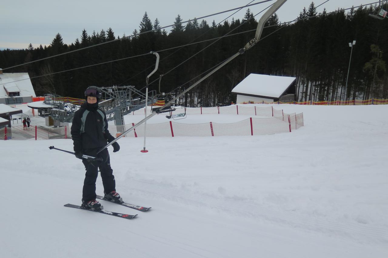 Dnešní den začal krásným budíčkem v 7:00 od skupiny Červený mrožík. V 7:30 jsme šli společně na snídani. Výběr většina čekala větší, ale každý si něco vybral. Poté v 8:25 jsme měli sraz před hotelem v lyžařském oblečení s lyžáky, lyžemi a helmou. Odjeli jsme skibusem na sjezdovku Kobyla, kde jsme se rozdělili do třech družstev. Ze začátku jsme si udělali rozcvičku a jezdili společně na pomě, Denis mezitím s paní učitelkou Kučerovou vyměnil v půjčovně svůj rozpadlý přezkáč za jiný. První družstvo neboli jedničky se přesunuli na velkou sjezdovku. Okolo 11:45 jsme měli pod kopcem sraz a odjeli skibusem zpátky na hotel. Jedničky to vzali lesní cestou kolem cukrárny Elli. Jen co jsme přijeli, šli jsme na oběd, ke kterému byli vepřové na paprice s těstovinami. Následoval polední klid. Přesně ve 13:40 jsme stáli před hotele připraveni odjet na sjezdovku. První dvě družstva dělali různá cvičení na zlepšování techniky carvingového oblouku. Třetí družstvo už vyjelo sedačkovou a sjíždělo také velký kopec, procvičovali jízdu pluhem. Před čtvrtou hodinou jsme sjeli dolů pod kopec a skibusem se přesunuli do hotelu, Někteří jeli opět s paní učitelkou Kučerovou lesní cestou. Po příjezdu na hotel jsme měli hodinu volného času a ukázky videí našich jízd. K večeři byli francouzské brambory. Většině nechutnaly. Následovala večerní přednáška první pomoci, ukázka transportu a stylů polohování raněného. Zahráli jsme si také hru Activity a pomocí pantomimy, popisu či kreslení ztvárňovali jednotlivá slova. Před večerkou proběhla ještě kontrola pokojů.