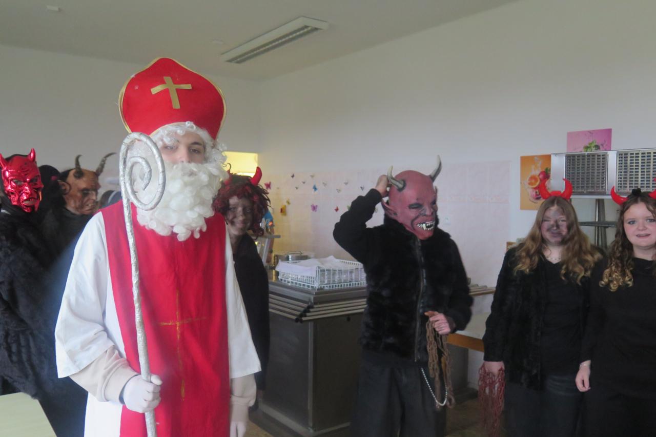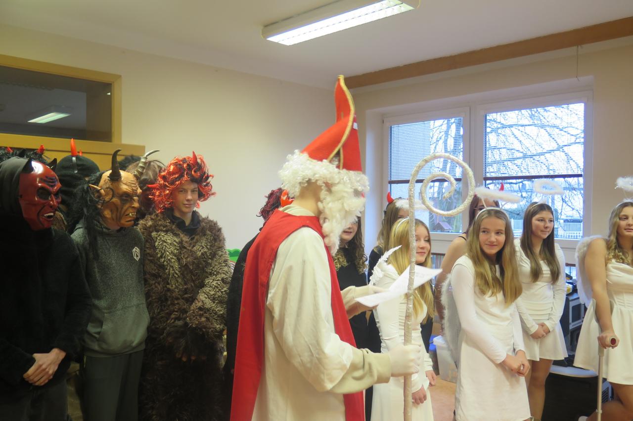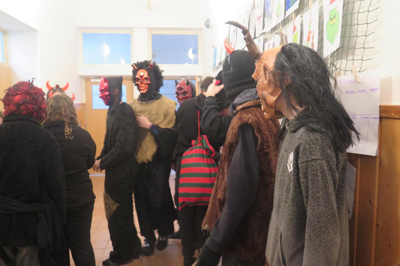 Přípravy začaly o velké přestávce. Kostýmy se ladily do posledního detailu – od sněhobílých křídel andělů přes majestátní Mikulášovy vousy až po řádně začerněné tváře čertů. Jakmile bylo vše připraveno, vydala se početná banda do školky.