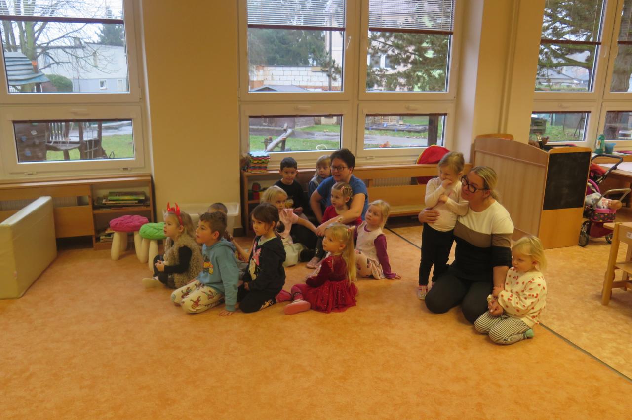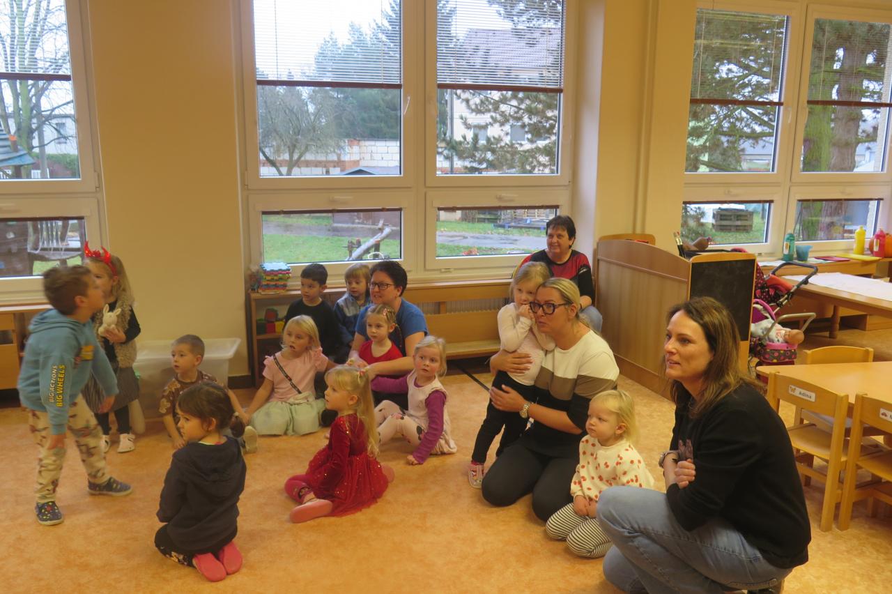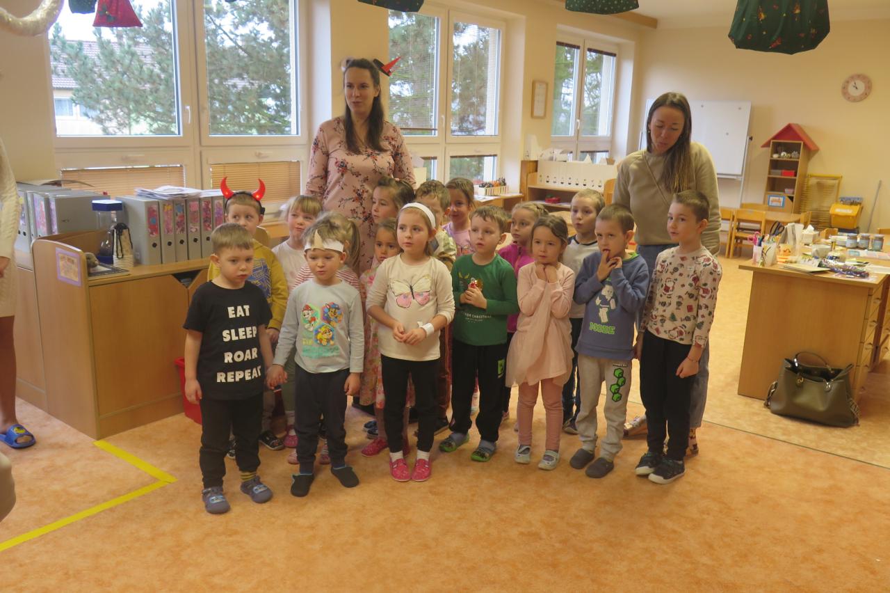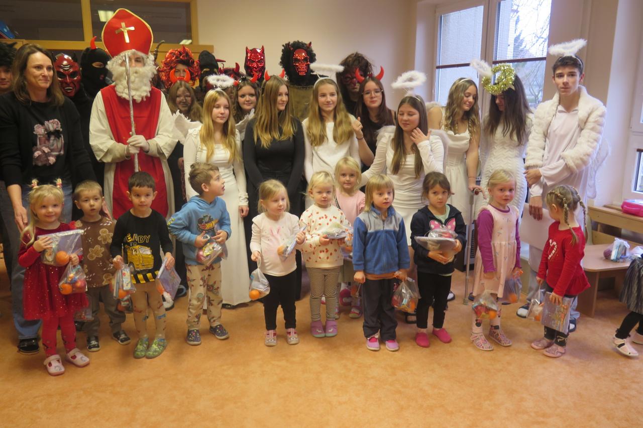 Ve školce na ně čekaly rozzářené, ale i trošku ustrašené oči těch nejmenších. Čerti sice občas zachrastili řetězem, ale pod dohledem laskavého Mikuláše a usměvavých andělů bylo brzy jasné, že se nikdo nemusí bát. Aby si děti zasloužily balíček s dobrotami, musely ukázat, co všechno umí. Děti recitovaly naučené básničky a zpívaly písničky.