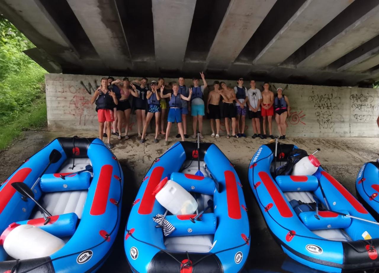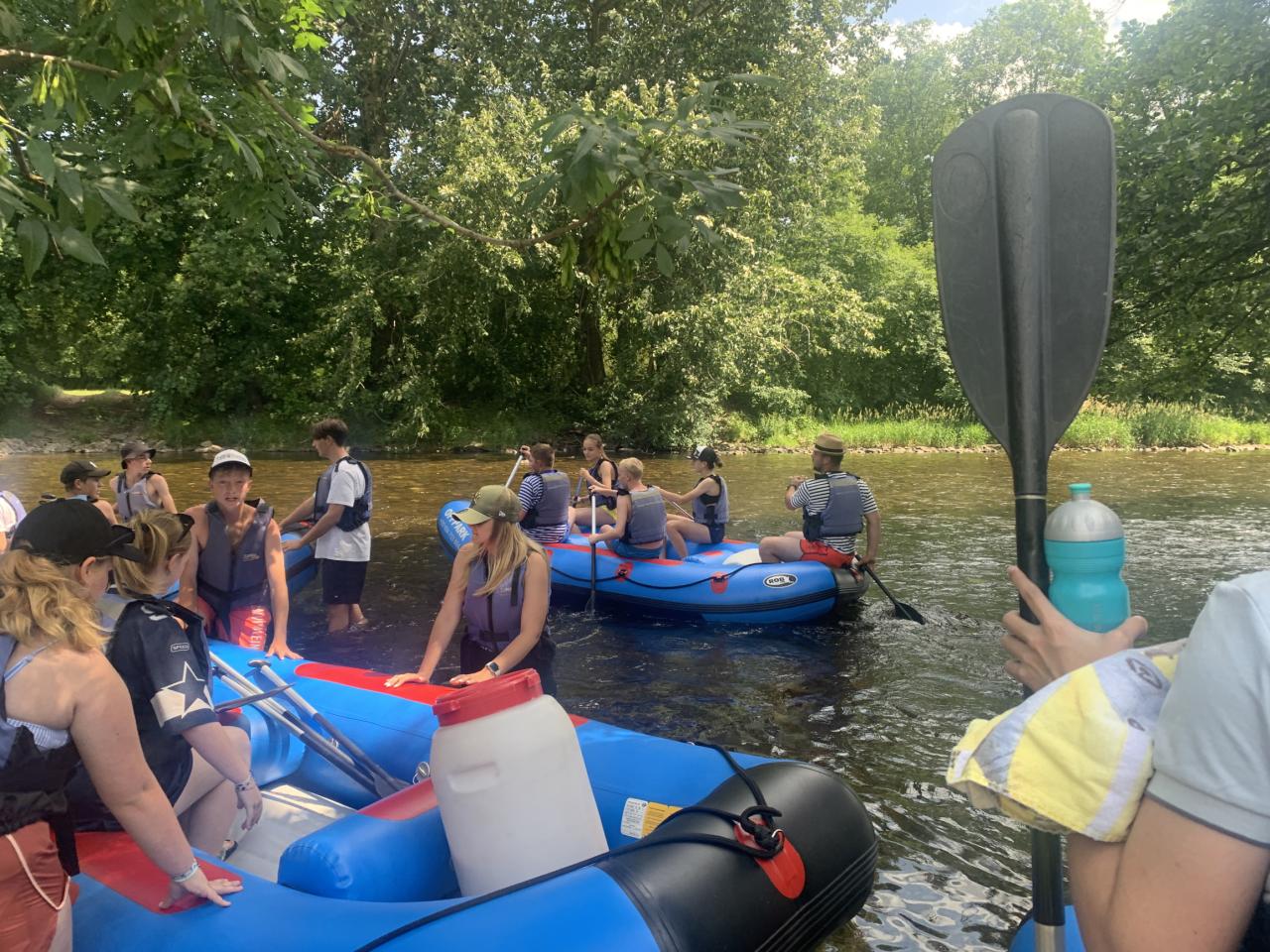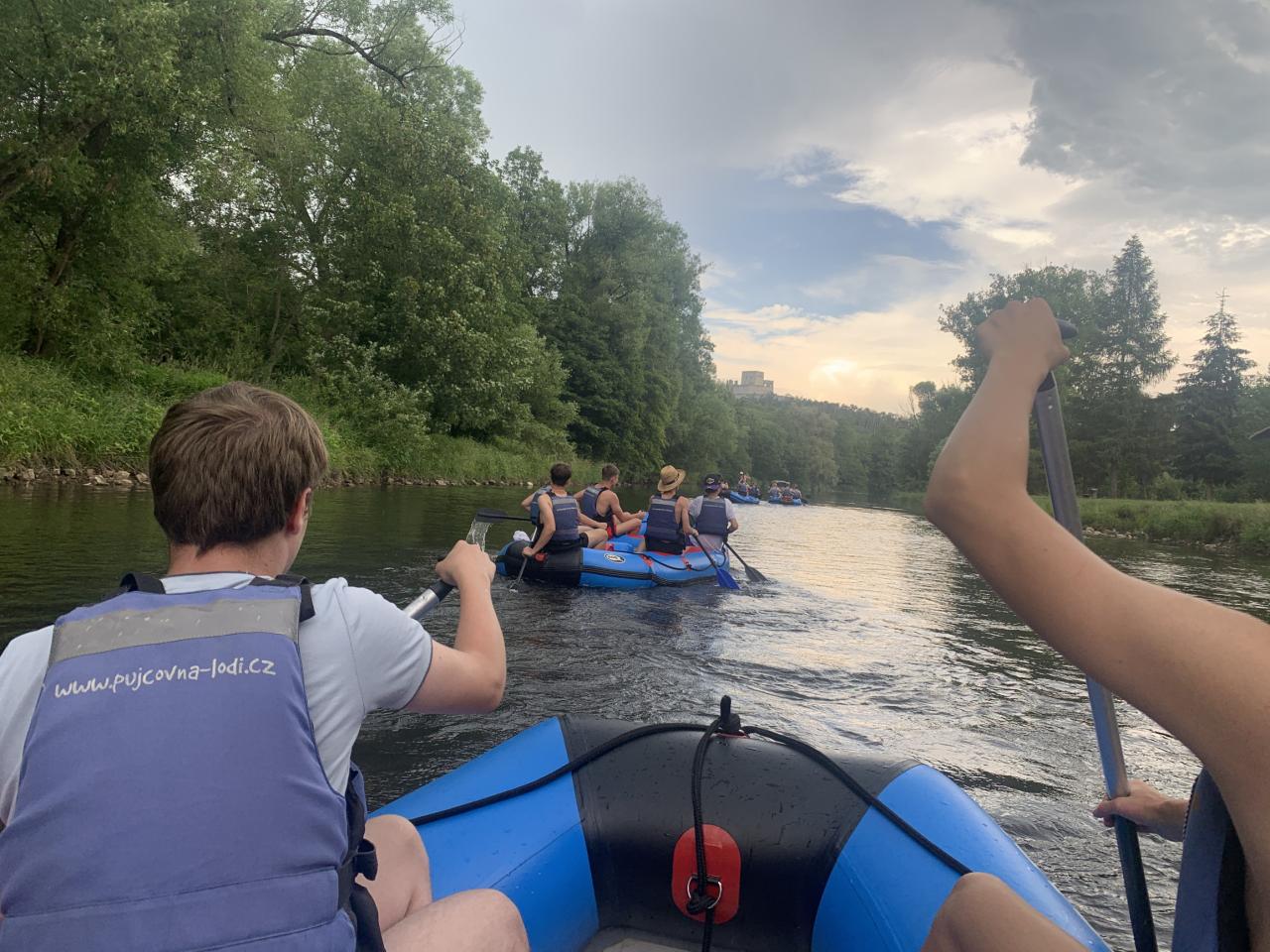 Hned první den odpoledne jsme vyrazili na rafty na Otavu. Kromě nás na řece nikdo nebyl, tak jsme si to pořádně užili. Ve chvíli, kdy nás dostihla bouřka, se před námi objevil most, kde jsme přeháňku přečkali. Večer jsme ve společenské místnosti hráli hry.