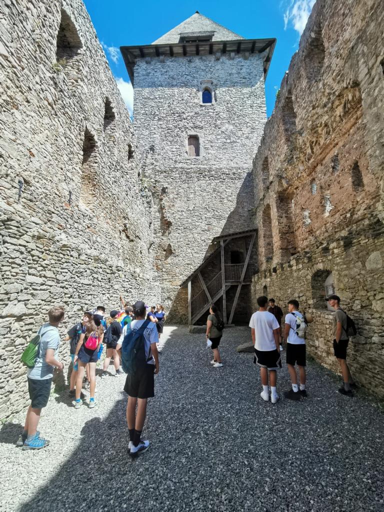 Druhý den nás čekal celodenní výlet na hrad Kašperk. Do města Kašperské Hory jsme se přiblížili autobusem a pak výšlap pěšky do kopce na hrad. Počasí nám přálo a tak výhled ze zříceniny Pustý hrádek byl nádherný. Po komentované prohlídce hradu jsme se vraceli zpátky na autobus. Zajímavé, že všem se zdálo, že šlapeme zase do kopce :). Po krátkém odpočinku se nám energie vrátila a celý večer jsme strávili venku.